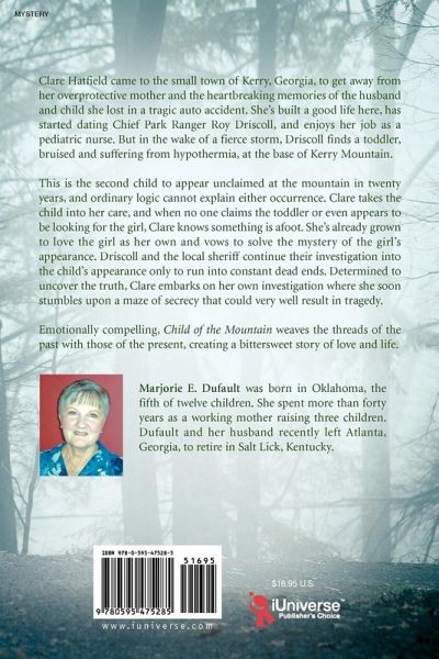 Clare Hatfield came to the small town of Kerry, Georgia, to get away from her overprotective mother and the heartbreaking memories of the husband and child she lost in a tragic auto accident. She's built a good life here, has started dating Chief Park Ranger Roy Driscoll, and enjoys her job as a pediatric nurse. But in the wake of a fierce storm, Driscoll finds a toddler, bruised and suffering from hypothermia, at the base of Kerry Mountain. This is the second child to appear unclaimed at the mountain in twenty years, and ordinary logic cannot explain either occurrence. Clare takes the child into her care, and when no one claims the toddler or even appears to be looking for the girl, Clare knows something is afoot. She's already grown to love the girl as her own and vows to solve the mystery of the girl's appearance. Driscoll and the local sheriff continue their investigation into the child's appearance only to run into constant dead ends. Determined to uncover the truth, Clare embarks on her own investigation where she soon stumbles upon a maze of secrecy that could very well result in tragedy. Emotionally compelling, Child of the Mountain weaves the threads of the past with those of the present, creating a bittersweet story of love and life.