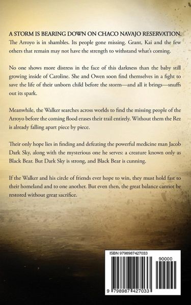 Book 5 in the Amazon #1 Best Selling supernatural suspense series! A storm is bearing down on Chaco Navajo Reservation. The Arroyo is in shambles. Its people gone missing. Grant, Kai and the few others that remain may not have the strength to withstand what's coming. No one shows more distress in the face of this darkness than the baby still growing inside of Caroline. She and Owen soon find themselves in a fight to save the life of their unborn child before the storm-and all it brings-snuffs out its spark. Meanwhile, the Walker searches across worlds to find the missing people of the Arroyo before the coming flood erases their trail entirely. Without them the Rez is already falling apart piece by piece. Their only hope lies in finding and defeating the powerful medicine man Jacob Dark Sky, along with the mysterious one he serves: a creature known only as Black Bear. But Dark Sky is strong, and Black Bear is cunning. If the Walker and his circle of friends ever hope to win, they must hold fast to their homeland and to one another. But even then, the great balance cannot be restored without great sacrifice.