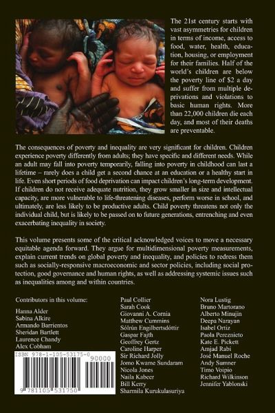 The 21st century starts with vast inequalities for children in terms of income, access to food, water, health, education, housing, or employment for their families. Half of the world's children are below the poverty line of $2 a day and suffer from multiple deprivations and violations to basic human rights. More than 22,000 children die each day, and most of their deaths are preventable. This volume presents some of the critical acknowledged voices to move a necessary agenda forward. It explains multidimensional poverty measurements, describes current trends and presents policies to reduce poverty and inequality. Contributors include Armando Barrientos, Sarah Cook, Andrea Cornia, Sir Richard Jolly, Jomo K.S., Naila Kabeer, Nora Lustig, among many others.