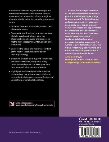 Part I. Basic Concepts and Processes: 1. Normality and abnormality in the context of human development: basic definitions 2. History: from ancient wisdom to the behavioral and cognitive revolutions 3. Classification of children's psychological problems: pseudoscience or fundamental part of the helping process? 4. Genetics and psychopathology Mara Brendgen 5. The physiological underpinnings of child psychopathology Paul Hastings and Amanda Guyer 6. Family influences, family consequences and family interventions 7. The helpful and harmful influences of peers, friends and siblings 8. Cultural dimensions of child psychopathology 9. Psychological assessment as part of the caring process 10. Prevention and mental health promotion with Eli Cwinn 11. Psychological interventions with children and adolescents: basic concepts Part II. High-Incidence Disorders: 12. Disruptive behavior disorders 13. Depression 14. Attention deficit/hyperactivity disorder 15. Anxiety disorders Part III. Developmental Disorders: 16. Intellectual disability 17. Autism spectrum disorders 18. Dyslexia and other learning problems as child psychopathology Part IV. Less Frequent Forms of Child Psychopathology: 19. Eating disorders 20. Bipolar disorder in childhood and adolescence: a modern-day epidemic? 21. Substance use disorders 22. School refusal 23. Post-traumatic stress disorder 24. Gender dysphoria in children: or, what is psychopathology? with Eli Cwinn.