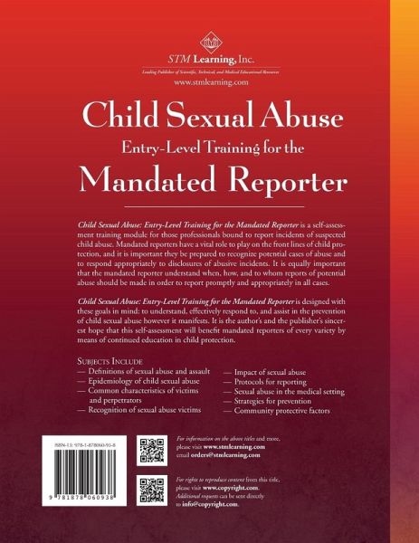 Child Sexual Abuse: Entry-Level Training for the Mandated Reporter is designed with these goals in mind: to understand, effectively respond to, and assist in the prevention of child sexual abuse, however it manifests. It is the author’s and the publisher’s sincerest hope that this training self-assessment will benefit mandated reporters of every variety, as well as the children and families they work with, by means of continued education in child protection. Mandated reporters have a vital role to play on the front lines of child protection, and it is important they be prepared to recognize potential cases of abuse and to respond appropriately to disclosures of abusive incidents. It is equally important that the mandated reporter understand when, how, and to whom reports of potential abuse should be made in order to report promptly and appropriately in all cases.
