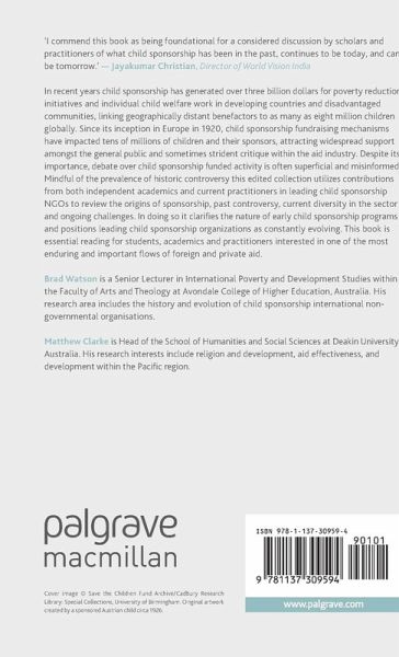 This book reviews the remarkable growth, diversity and challenges of child sponsorship. It features the latest progress in child sponsorship practice and necessary tensions experienced by some organisations as they seek to maximise impact.