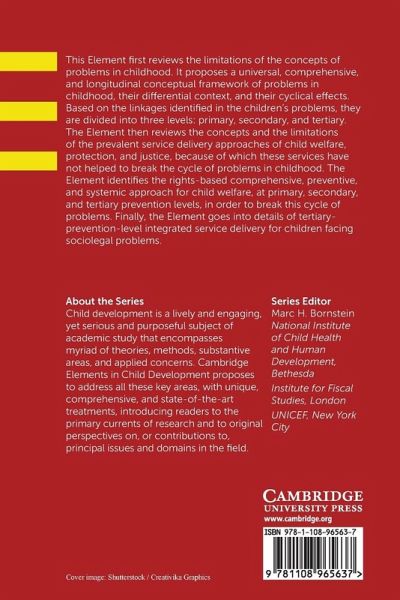 Reviews limitations of concepts of problems in childhood, and the prevalent service delivery approaches of child welfare, protection, and justice. It identifies the rights-based comprehensive, preventive, and systemic approach for child welfare, and details the prevention level integrated service delivery for children facing socio-legal problems.