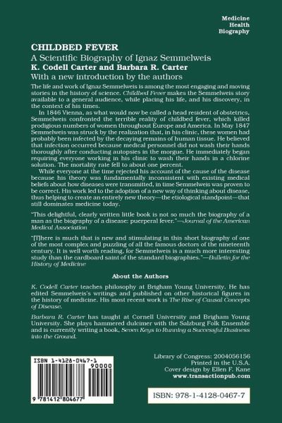 The life and work of Ignaz Semmelweis is among the most engaging and moving stories in the history of science. Childbed Fever makes the Semmelweis story available to a general audience, while placing his life, and his discovery, in the context of his times. In 1846 Vienna, as what would now be called a head resident of obstetrics, Semmelweis confronted the terrible reality of childbed fever, which killed prodigious numbers of women throughout Europe and America. In May 1847 Semmelweis was struck by the realization that, in his clinic, these women had probably been infected by the decaying remains of human tissue. He believed that infection occurred because medical personnel did not wash their hands thoroughly after conducting autopsies in the morgue. He immediately began requiring everyone working in his clinic to wash their hands in a chlorine solution. The mortality rate fell to about one percent. While everyone at the time rejected his account of the cause of the disease because his theory was fundamentally inconsistent with existing medical beliefs about how diseases were transmitted, in time Semmelweis was proven to be correct. His work led to the adoption of a new way of thinking about disease, thus helping to create an entirely new theory - the etiological standpoint - that still dominates medicine today.