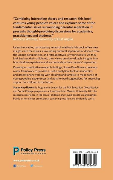 Drawing on the qualitative research findings, this book develops a new framework to provide a useful analytical tool for academics and practitioners working with children and families to make sense of young people's experiences of parental separation and divorce and puts forward suggestions for improving support for children in the future.