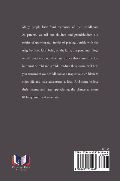 Many people have fond memories of their childhood. As parents, we tell our children and grandchildren our stories of growing up. Stories of playing outside with the neighborhood kids, being on the farm, our pets, and things we did on vacation. These are stories that cannot be lost but must be told and retold. Reading these stories will help you remember your childhood and inspire your children to enjoy life and have adventures as kids. And come to love their parents and later appreciating the chance to create lifelong bonds and memories.