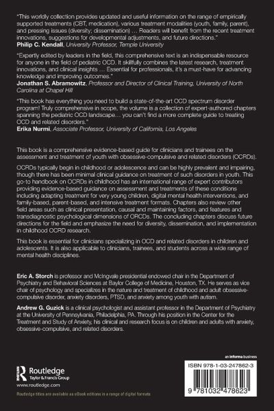 This book is a comprehensive evidence-based guide for clinicians and trainees on the assessment and treatment of youth with obsessive-compulsive and related disorders (OCRDs).