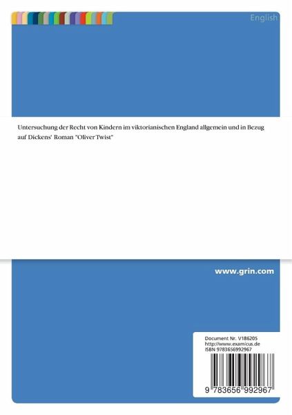 Seminar paper from the year 2001 in the subject English Language and Literature Studies - Literature, grade: 1.5, University of Hamburg, language: English, abstract: Untersuchung der Recht von Kindern im viktorianischen England allgemein und in Bezug auf Dickens' Roman "Oliver Twist"