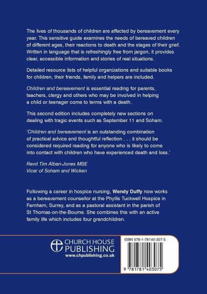 The lives of thousands of children are affected by bereavement every year. This guide examines the needs of bereaved children of different ages, their reactions to death, and the stages of their grief. It is useful for parents, teachers, clergy and those who are helping a child or teenager to come to terms with death.