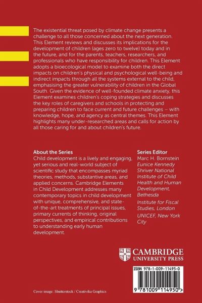 This Element reviews and discusses the implications of climate change for the development of children, and for the caregivers and professionals who have responsibility for them. It highlights many under-researched areas and calls for action.