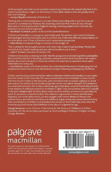 'Children and Sexuality is a courageous and timely book. The authors, who include historians, anthropologists and psychonalysts, dare to confront one of the most difficult social problems of our time and to view it from a historical and a comparative perspective.' - Peter Burke, Emmanuel College, University of Cambridge, UK