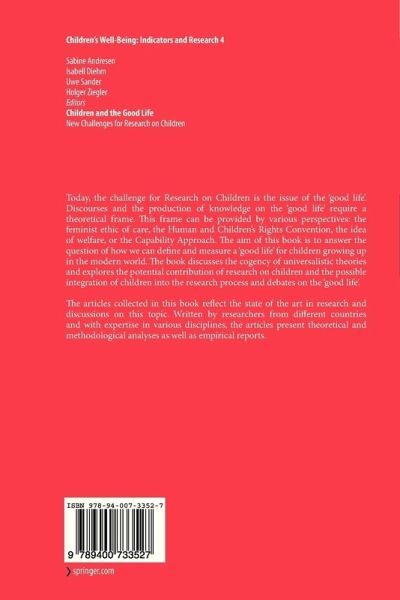 In April 2009, an inspiring international conference was held at Bielefeld on the topic "Children and the Good Life: New Challenges for Research on Children." The focus was on how we can define and measure a "good life" for children growing up in the modern world. This tied in with discussions on how convincing universalistic theories are, what research on children can contribute, and how children themselves can be integrated into the research process and debates on the "good life."Discourses and the production of knowledge on the "good life" or "well-being" require a guiding idea or a theoretical frame. This frame can come from the feminist ethic of care or from the Human and Children's Rights Convention, from the idea of welfare, or from the Capability Approach.