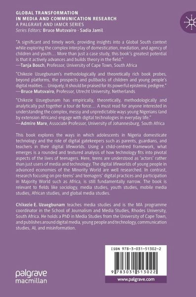 This book explores the ways in which adolescents in Nigeria domesticate technology and the role of digital gatekeepers such as parents, guardians, and teachers in their digital lifeworlds. Using a child-centred framework, what emerges is a rounded and textured analysis of how technology fits into pivotal aspects of the lives of teenagers. Here, teens are understood as 'actors' rather than just users of media and technology. The digital lifeworlds of young people in advanced economies of the Minority World are well researched. In contrast, research focusing on pre-teens' and teenagers' digital practices and participation in Majority World such as Africa, is still fundamentally narrow. The book is relevant to fields like sociology, media studies, youth studies, mobile media studies, African studies, and global media studies.
