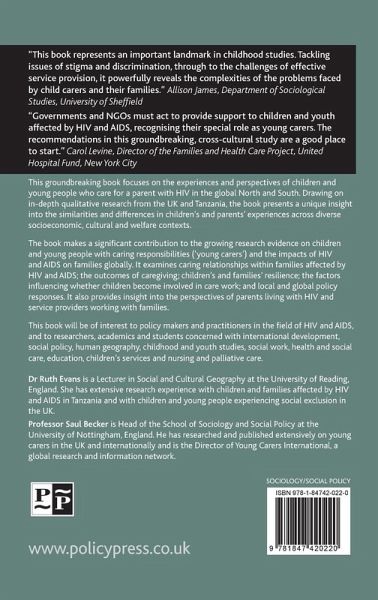 The book makes a significant contribution to the growing research evidence on children and young people with caring responsibilities ('young carers') and the impacts of HIV/AIDS on families globally, focusing on the experiences and perspectives of children that are caring for a parent with HIV in the global North and South.