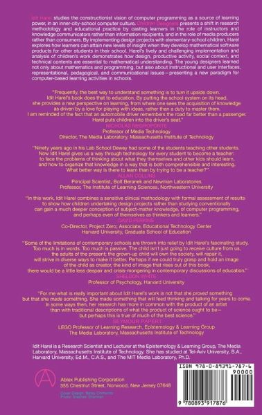 In this book, the author presents a new vision of learning through design and production, and describes computer programming as a source of a learning and design power. As means of studying this extended notion of children's programming, the author implemented Instructional Software Design Projects to explore the learning that takes place when students develop complete mathematical software products designed for other students in their school. The results demonstrate that the young designers learned not only about mathematics (fractions) and programming (Logo), but also about design and user interfaces, as well as representational, pedagogical, and communicational issues.