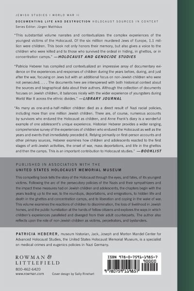 Children during the Holocaust, from the United States Holocaust Memorial Museum's Center for Advanced Holocaust Studies, tells the story of the Holocaust through the eyes, and fates, of its youngest victims. The ten chapters follow the arc of the persecutory policies of the Nazis and their sympathizers and the impact these measures had on Jewish children and adolescents-from the years leading to the war, to the roundups, deportations, and emigrations, to hidden life and death in the ghettos and concentration camps, and to liberation and coping in the wake of war. This volume examines the reactions of children to discrimination, the loss of livelihood in Jewish homes, and the public humiliation at the hands of fellow citizens and explores the ways in which children's experiences paralleled and diverged from their adult counterparts. Additional chapters reflect upon the role of non-Jewish children as victims, perpetrators, and bystanders during World War II. Offering a collection of personal letters, diaries, court testimonies, government documents, military reports, speeches, newspapers, photographs, and artwork, Children during the Holocaust highlights the diversity of children's experiences during the nightmare years of the Holocaust.