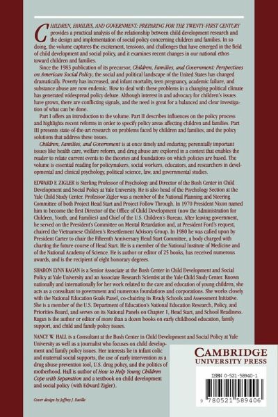 Children, Families, and Government analyses the relationship between child development research and the design and implementation of social policy concerning children and families. It captures the excitement and challenges emerging in the field of child development and social policy, and it examines recent changes in our national ethos towards children and families.