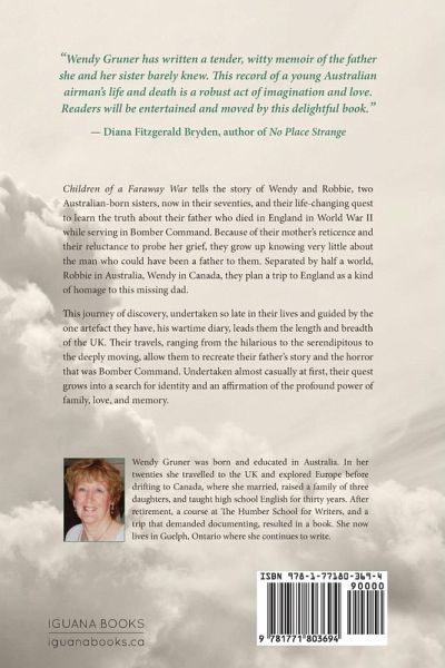 Children of a Faraway War tells the story of Wendy and Robbie, two Australian-born sisters, now in their seventies, and their life-changing quest to learn the truth about their father who died in England in World War II while serving in Bomber Command. Because of their mother’s reticence and their reluctance to probe her grief, they grow up knowing very little about the man who could have been a father to them. Separated by half a world, Robbie in Australia, Wendy in Canada, they plan a trip to England as a kind of homage to this missing dad. This journey of discovery, undertaken so late in their lives and guided by the one artefact they have, his wartime diary, leads them the length and breadth of the UK. Their travels, ranging from the hilarious to the serendipitous to the deeply moving, allow them to recreate their father’s story and the horror that was Bomber Command. Undertaken almost casually at first, their quest grows into a search for identity and an affirmation of the profound power of family, love, and memory.