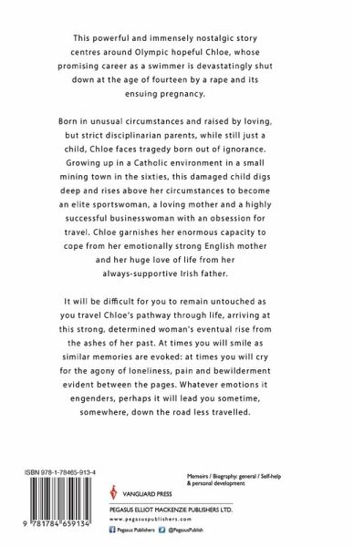 This powerful and immensely nostalgic story centres around Olympic hopeful Chloe, whose promising career as a swimmer is devastatingly shut down at the age of fourteen by a rape and its ensuing pregnancy. Born in unusual circumstances and raised by loving, but strict disciplinarian parents, while still just a child, Chloe faces tragedy born out of ignorance. Growing up in a Catholic environment in a small mining town in the sixties, this damaged child digs deep and rises above her circumstances to become an elite sportswoman, a loving mother and a highly successful businesswoman with an obsession for travel. Chloe garnishes her enormous capacity to cope from her emotionally strong English mother and her huge love of life from her always-supportive Irish father. It will be difficult for you to remain untouched as you travel Chloe's pathway through life, arriving at this strong, determined woman's eventual rise from the ashes of her past. At times you will smile as similar memories are evoked: at times you will cry for the agony of loneliness, pain and bewilderment evident between the pages. Whatever emotions it engenders, perhaps it will lead you sometime, somewhere, down the road less travelled.