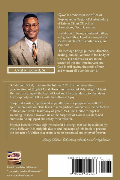 "Children of God, it is time for Jubilee!" This is the resounding proclamation of Prophet Cyril Howell in this remarkably insightful book. He has truly grasped the heart of God and His great desire to liberate us from captivity and fill us with the fullness of joy. Scriptural feasts are presented as parallels to our progressive walk of spiritual preparation. This leads to a magnificent outcome -- the perfection of the church with a testimony of grace. It awakens us of the purposes of God in our lives and alert us to be equipped and ready for a mission.
