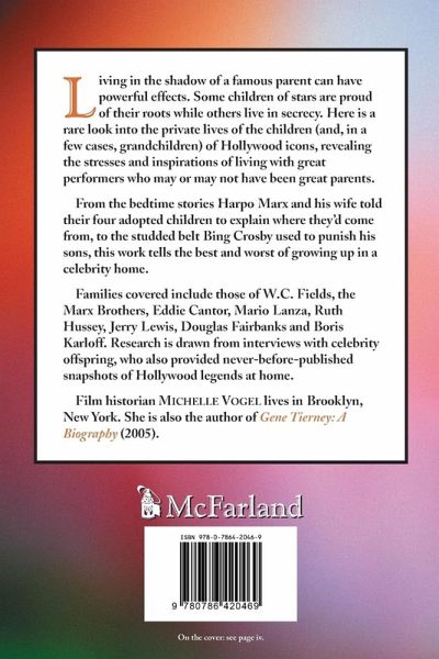 Living in the shadow of a famous parent can have powerful effects, from professional opportunities to pressure so great it leads to suicide. Some children of stars are proud of their roots while others live in secrecy. This is a rare look into the private lives of the children (and, in a few cases, grandchildren) of these classic Hollywood icons, revealing the stresses and inspirations of living with great performers who may or may not have been great parents. Some movie stars protected their offspring, but others used them as publicity props or even made them into rivals. Despite their unusual upbringing, some of the children succeeded in the movies or elsewhere, but many never lived up to the public expectations. Many lost their parents, whether to the extremes of the celebrity lifestyle, to divorce, or to their careers. From the beautiful bedtime stories Harpo Marx and his wife told their four adopted children to explain where they'd come from, to the studded belt Bing Crosby used to punish his sons for not obeying the strict family rules, this work tells the best and worst of growing up in a celebrity home. Families covered include those of W.C. Fields, the Marx Brothers, Eddie Cantor, Mario Lanza, Ruth Hussey, Jerry Lewis, Douglas Fairbanks and Boris Karloff. Research is drawn from interviews with celebrity offspring, who also provided never-before-published snapshots of Hollywood legends at home.