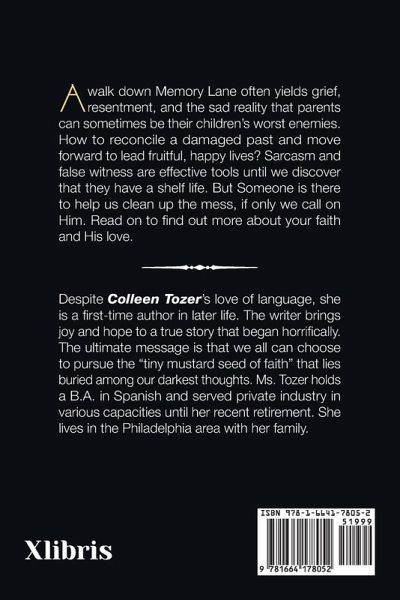 A walk down Memory Lane often yields grief, resentment, and the sad reality that parents can sometimes be their children's worst enemies. How to reconcile a damaged past and move forward to lead fruitful, happy lives? Sarcasm and false witness are effective tools until we discover that they have a shelf life. But Someone is there to help us clean up the mess, if only we call on Him. Read on to find out more about your faith and His love.
