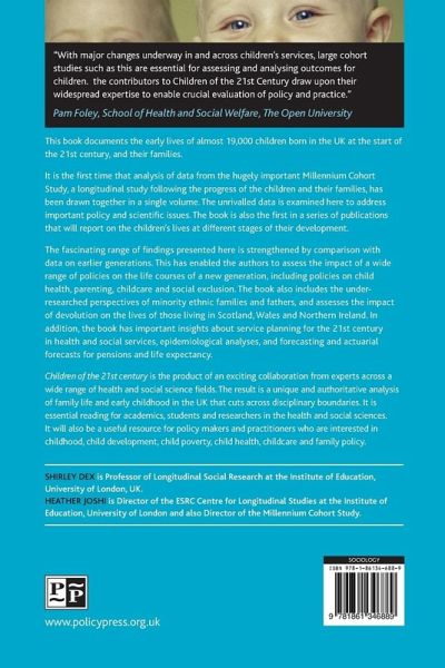 This book documents the early lives of almost 19,000 children born in the UK at the start of the 21st century. It is the first time that analysis from the hugely important Millennium Cohort Study has been compiled in a single volume and is also the first in a series of publications reporting on the children's lives at different stages.