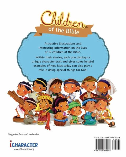 Attractive illustrations and interesting information on the lives of 12 children of the Bible. Within their stories, each of these "Children of the Bible" display a unique character trait and give some helpful examples of how kids can also play a role in doing special things for God. Suggested for ages 7 and under. For more kids products and free downloads, visit our website at www.icharacter.org