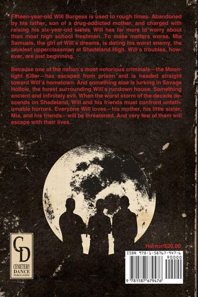 Fifteen-year-old Will Burgess is used to rough times. Abandoned by his father, son of a drug-addicted mother, and charged with raising his six-year-old sister, Will has far more to worry about than most high school freshmen. To make matters worse, Mia Samuels, the girl of Will's dreams, is dating his worst enemy, the cruelest upperclassman at Shadeland High. Will's troubles, however, are just beginning. Because one of the nation's most notorious criminals-the Moonlight Killer-has escaped from prison and is headed straight toward Will's hometown. And something else is lurking in Savage Hollow, the forest surrounding Will's rundown house. Something ancient and infinitely evil. When the worst storm of the decade descends on Shadeland, Will and his friends must confront unfathomable horrors. Everyone Will loves-his mother, his little sister, Mia, and his friends-will be threatened. And very few of them will escape with their lives. "One of the best writers in modern horror to come along in the last decade. Janz is one of my new favorites." -Brian Keene