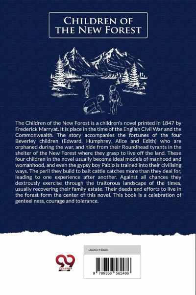 The Children of the New Forest is a children's novel printed in 1847 by Frederick Marryat. It is place in the time of the English Civil War and the Commonwealth. The story accompanies the fortunes of the four Beverley children (Edward, Humphrey, Alice and Edith) who are orphaned during the war, and hide from their Roundhead tyrants in the shelter of the New Forest where they grasp to live off the land. These four children in the novel usually become ideal models of manhood and womanhood, and even the gypsy boy Pablo is trained into their civilising ways. The peril they build to bait cattle catches more than they deal for, leading to one experience after another. Against all chances they dextrously exercise through the traitorous landscape of the times, usually recovering their family estate. Their deeds and efforts to live in the forest form the center of this novel. This book is a celebration of genteel ness, courage and tolerance.