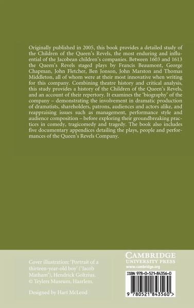 Introduction 1. Raiding the nest: the children of the Queen's Revels and their plays 2. 'Proper Gallants Words': comedy and the theatre audience 3. 'Grief and Joy so Suddenly Commixt': company politics and the development of tragicomedy 4. 'Ieronimo in Decimosexto': tragedy and the text Conclusion Appendix A. The repertory (summary) Appendix B. The Repertory (data and analysis) Appendix C. Biographical summary Appendix D. Actor lists Appendix E. Court and touring performances.