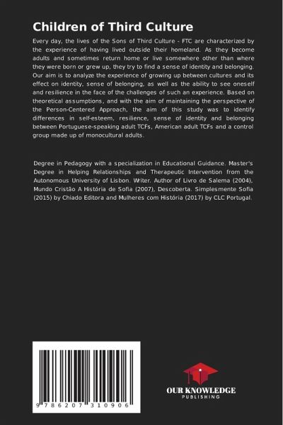 Every day, the lives of the Sons of Third Culture - FTC are characterized by the experience of having lived outside their homeland. As they become adults and sometimes return home or live somewhere other than where they were born or grew up, they try to find a sense of identity and belonging. Our aim is to analyze the experience of growing up between cultures and its effect on identity, sense of belonging, as well as the ability to see oneself and resilience in the face of the challenges of such an experience. Based on theoretical assumptions, and with the aim of maintaining the perspective of the Person-Centered Approach, the aim of this study was to identify differences in self-esteem, resilience, sense of identity and belonging between Portuguese-speaking adult TCFs, American adult TCFs and a control group made up of monocultural adults.