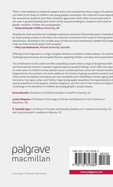 'Reading this book unsettles and challenges traditional narratives of becoming sexual. Assembled by three leading scholars in the field, this collection contributes fresh ways of thinking about sexualization, attending to the complex array of historical and contemporary debates that shape what we think we know about child sexuality.'-Mary Lou Rasmussen, Monash University, Australia