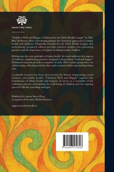 "Children Well and Happy: A Manual for the Girl's Health League" by May Bliss Dickinson offers a fascinating glimpse into historical approaches to infant health and childcare. Originally intended for the Girl's Health League, this meticulously prepared edition provides timeless insights into parenting practices and the importance of hygiene in raising healthy children. Delving into the core principles of infant health, the book addresses key aspects of childcare, emphasizing practices designed to keep infants "well and happy." Dickinson's manual provides a snapshot of early 20th-century perspectives on child-rearing, reflecting societal values and common beliefs surrounding infant care. A valuable resource for those interested in the history of parenting, social sciences, and public health, "Children Well and Happy" explores the foundations of infant health and hygiene. It serves as a reminder of the enduring concerns surrounding the well-being of children and the ongoing quest for effective parenting strategies. This work has been selected by scholars as being culturally important, and is part of the knowledge base of civilization as we know it. This work is in the public domain in the United States of America, and possibly other nations. Within the United States, you may freely copy and distribute this work, as no entity (individual or corporate) has a copyright on the body of the work. Scholars believe, and we concur, that this work is important enough to be preserved, reproduced, and made generally available to the public. We appreciate your support of the preservation process, and thank you for being an important part of keeping this knowledge alive and relevant.