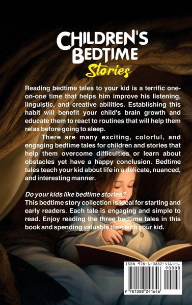 Reading bedtime tales to your kid is a terrific one-on-one time that helps him improve his listening, linguistic, and creative abilities. Establishing this habit will benefit your child's brain growth and educate them to react to routines that will help them relax before going to sleep.There are many exciting, colorful, and engaging bedtime tales for children and stories that help them overcome difficulties or learn about obstacles yet have a happy conclusion. Bedtime tales teach your kid about life in a delicate, nuanced, and interesting manner. Do your kids like bedtime stories?This bedtime story collection is ideal for starting and early readers. Each tale is engaging and simple to read. Enjoy reading the three bedtime tales in this book and spending valuable time with your kid.