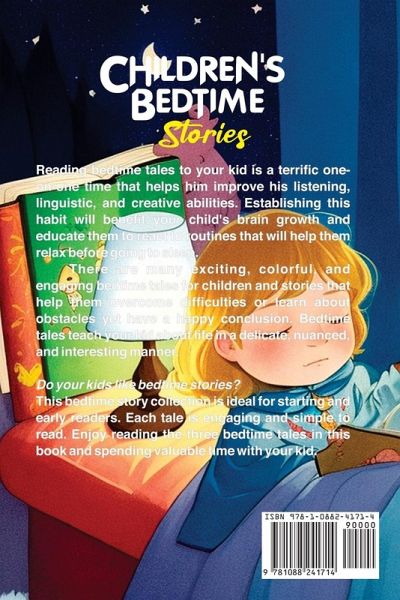 Reading bedtime tales to your kid is a terrific one-on-one time that helps him improve his listening, linguistic, and creative abilities. Establishing this habit will benefit your child's brain growth and educate them to react to routines that will help them relax before going to sleep.There are many exciting, colorful, and engaging bedtime tales for children and stories that help them overcome difficulties or learn about obstacles yet have a happy conclusion. Bedtime tales teach your kid about life in a delicate, nuanced, and interesting manner. Do your kids like bedtime stories?This bedtime story collection is ideal for starting and early readers. Each tale is engaging and simple to read. Enjoy reading the three bedtime tales in this book and spending valuable time with your kid.