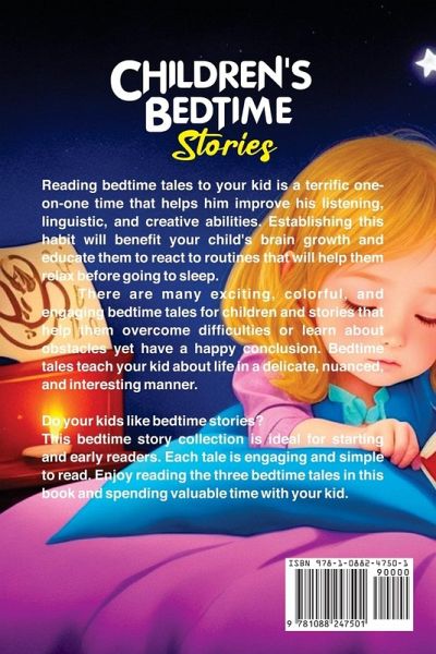 Reading bedtime tales to your kid is a terrific one-on-one time that helps him improve his listening, linguistic, and creative abilities. Establishing this habit will benefit your child's brain growth and educate them to react to routines that will help them relax before going to sleep.There are many exciting, colorful, and engaging bedtime tales for children and stories that help them overcome difficulties or learn about obstacles yet have a happy conclusion. Bedtime tales teach your kid about life in a delicate, nuanced, and interesting manner. Do your kids like bedtime stories?This bedtime story collection is ideal for starting and early readers. Each tale is engaging and simple to read. Enjoy reading the three bedtime tales in this book and spending valuable time with your kid.