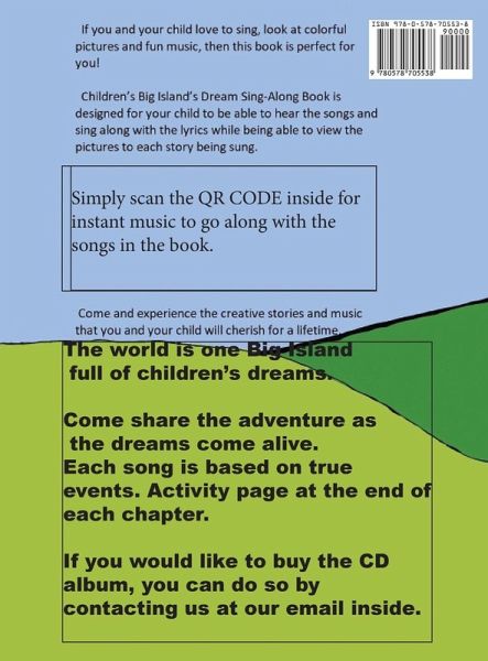 If you and your child love to sing, look at colorful pictures and enjoy fun music, then this book is perfect for you! Children's Big Island's Dream Sing-Along Book is designed for your child to be able to hear the songs and sing along with the lyrics. The pictures help to bring the stories to life. I wrote each story and my twin helps me sing each original song. Each chapter includes the true story behind the song. At the end of each chapter there are activities you can do with your child. They will learn to count, identify colors and sounds, build their memory, and teach them interesting information. Come and experience the creative stories and music.