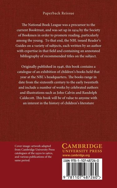 The National Book League was a precursor to the current Booktrust, and was set up in 1924 by the Society of Bookmen in order to promote reading, particularly among the young. To that end, the NBL issued Reader's Guides on a variety of subjects, each written by an author with expertise in that field and containing an annotated bibliography of recommended titles on the subject. Originally published in 1946, this book contains a catalogue of an exhibition of children's books held that year at the NBL's headquarters. The books range in date from the sixteenth century to the early twentieth and include a number of works by celebrated authors and illustrations such as John Calvin and Randolph Caldecott. This book will be of value to anyone with an interest in the history of children's literature.