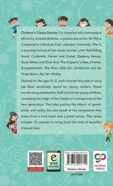'Children's Classic Stories 1' is compiled with tremendous efforts by Aniesha Brahma-a passionate writer, M. Phil in Comparative Literature from Jadavpur University. This is a stunning fortune of ten classic stories: Little Red Riding Hood, Cinderella, Hansel and Gretel, Sleeping Beauty, Snow White and Rose Red, The Emperor's New Clothes, Rumpelstiltskin, The Wise Little Girl, Goldilocks and the Three Bears, Rip Van Winkle. Desired for the ages 8-12, each favorite fairy tale or story has been sensitively retold for young readers. These stories are guaranteed to thrill and amuse young children, conveying the magic of the classics in a unique way to the new generation. The tales portray the effects of greed, pride, and vanity, but also speak of the compassion that arises from a kind heart and a jovial nature. This series includes 10 volumes to bring back the time of beautiful classical tales. Top 10 Hardcover Library Books: A Wrinkle in Time (9789389440188) How to Stop Worrying and Start Living (9789387669161) Their Eyes Were Watching God (9789389440577) The Magic of Believing (9789388118217) Zen in the Art of Archery (9789354990298) A Cloud by Day, a Fire by Night (9789391181611) Siddhartha by Hermann hesse (9789387669116) The Richest Man in Babylon (9789354990717) The Book of Five Rings (9789389440553) The Knowledge of the Holy (9789389157239) Note: Search by ISBN