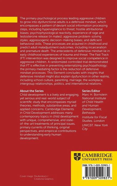 The primary psychological process leading aggressive children to grow into dysfunctional adults is a defensive mindset, which encompasses a pattern of deviant social information processing steps, including hypervigilance to threat; hostile attributional biases; psychophysiological reactivity, experience of rage and testosterone release (in males); aggressive problem-solving styles; aggressogenic decision-making biases; and deficient behavioral skills. These processes are acquired in childhood and predict adult maladjustment outcomes, including incarceration and premature death. The antecedents of defensive mindset lie in early childhood experiences of trauma and threat. The Fast Track (FT) intervention was designed to improve social competence in aggressive children. A randomized controlled trial demonstrated that FT is effective in preventing externalizing psychopathology; the primary mediating factor is the reduction of defensive mindset processes. This Element concludes with insights that defensive mindset might also explain dysfunction in other realms, including school culture, parenting, marriage, the workplace, intergroup relationships, politics, and international relations.
