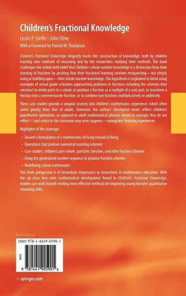 Children's Fractional Knowledge elegantly tracks the construction of knowledge, both by children learning new methods of reasoning and by the researchers studying their methods. The book challenges the widely held belief that children's whole number knowledge is a distraction from their learning of fractions by positing that their fractional learning involves reorganizing-not simply using or building upon-their whole number knowledge. This hypothesis is explained in detail using examples of actual grade-schoolers approaching problems in fractions including the schemes they construct to relate parts to a whole, to produce a fraction as a multiple of a unit part, to transform a fraction into a commensurate fraction, or to combine two fractions multiplicatively or additively.