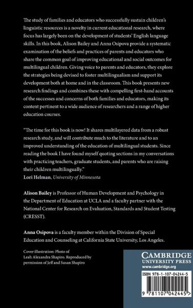 The study of families and educators who successfully sustain children's linguistic resources is a novelty in current educational research, where focus has largely been on the development of students' English language skills. In this book, Alison L. Bailey and Anna V. Osipova provide a systematic examination of the beliefs and practices of parents and educators who share the common goal of improving educational and social outcomes for multilingual children. Giving voice to parents and educators, they explore the strategies being devised to foster multilingualism and support its development both at home and in the classroom. This book presents new research findings and combines these with compelling firsthand accounts of the successes and concerns of both families and educators, making its content pertinent to a wide audience of researchers and a range of higher education courses.