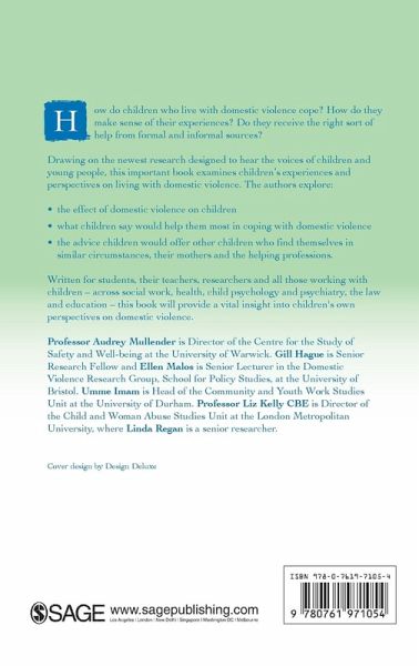 `The research methodology and the problems encountered when studying a subject such as domestic violence, coupled with the ethical problems of researching with children, are discussed at length in the book. This gives a good insight into the intricacies of conducting such a research study. The research looked not only at children who were known to have direct contact with domestic violence, but also what children in general thought and felt about domestic violence. The presentation of the findings, both in tabular and narrative form, was well presented' - Accident and Emergency Nursing Journal `This book offers accessible and interesting reading. It is well written as one would expect from these authors.... There are a lot of pointers for the way forward in terms of both policy and practice. This is likely to become a seminal text' - Research Policy and Planning 'This is a useful and challenging read for all of us who seek to work effectively and ethically in this complex area of practice' - Professional Social Work `Just looking at the authors of this book tells the reader that they are about to embark on a pioneering piece of academic research... a comprehensive and authoritative piece of work' - Domestic Abuse Quarterly `A vital tool for all those working with children' - ChildRight 'Written in a lucid style and is easy to read... it is essential reading for all students in social work undergraduate courses and also in post-qualifying courses on child welfare and protection. In addition professionals who are directly working in the area of child protection, schools and criminal justice settings would find this book informative and useful in understanding what children and young people want, and need, in relation to living in domestic violence situations' - Child and Family Social Work 'This book is powerfully written and is essential reading for professional working with and supporting abused women and their children. Its groundbreaking focus on children's experiences adds much to our understanding of the complexities of domestic violence' - Journal of Family Studies 'A treasure-chest of rich, diverse and powerful extracts from children and young people... in particular the material presented on different coping strategies used by children who have experienced domestic violence is an important contribution to an area about which very little is known' - Adoption and Fostering Journal How do children who live with domestic violence cope? How do they make sense of their experiences? Do they receive the right sort of help from formal and informal sources? Drawing on the newest research designed to hear the voices of children and young people, this important book examines children's experiences and perspectives on living with domestic violence. The authors explore: - the effect of domestic violence on children - what children say would help them most in coping with domestic violence - the advice children would offer other children who find themselves in similar circumstances, their mothers and the helping professions. This accessible book written for students, their teachers, researchers and all those working with children - across social work, health, child psychology and psychiatry, the law and education - will provide a vital insight into children's own perspectives on domestic violence.