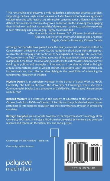 MYRIAM DENOV Associate Professor in the School of Social Work at McGill University, Canada. She holds a PhD from the University of Cambridge, where she was a Commonwealth Scholar. She is the author of Child Soldiers: Sierra Leone's Revolutionary United Front (Cambridge University Press). RICHARD MACLURE Professor in the Faculty of Education at the University of Ottawa, Canada. He holds a Ph.D. from Stanford University and has published widely on issues pertaining to international education and the circumstances of youth in developing countries. KATHRYN CAMPBELL Associate Professor in the Department of Criminology at the University of Ottawa, Canada. She conducts research and teaches in the field of social justice.