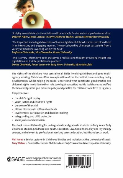 Considering the rights of the child is now central to all fields involving children and to good multi-agency working. This book offers an explanation of the theoretical issues and the key policy developments that are crucial to all professions, and helps the reader to understand children's rights in relation to their role in working with children and young people. Looking at education, health, social care and welfare, it bridges the gap between policy and practice for children from Birth to 19 years.