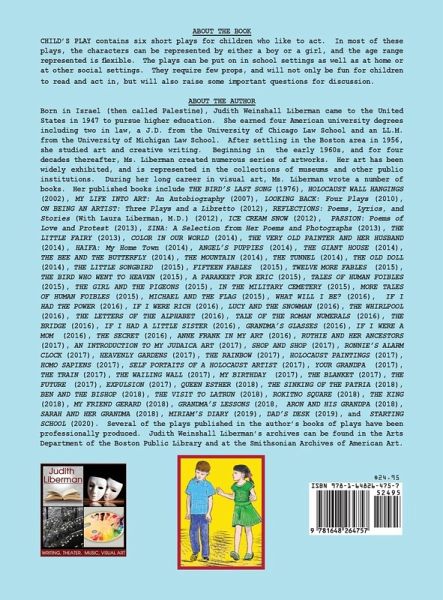 CHILD'S PLAY contains six short plays for children who like to act. In most of these plays, the characters can be represented by either a boy or a girl, and the age range represented is flexible. The plays can be put on in school settings as well as at home or at other social settings. They require few props, and will not only be fun for children to read and act in, but will also raise some important questions for discussion.