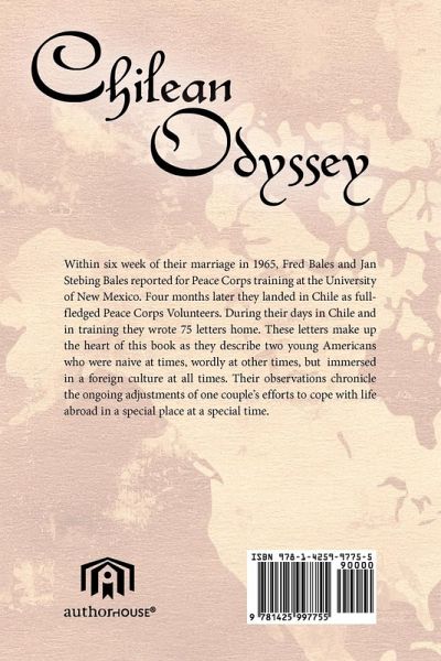 Within six week of their marriage in 1965, Fred Bales and Jan Stebing Bales reported for Peace Corps training at the University of New Mexico. Four months later they landed in Chile as full-fledged Peace Corps Volunteers. During their days in Chile and in training they wrote 75 letters home. These letters make up the heart of this book as they describe two young Americans who were naive at times, wordly at other times, but immersed in a foreign culture at all times. Their observations chronicle the ongoing adjustments of one couple's efforts to cope with life abroad in a special place at a special time.