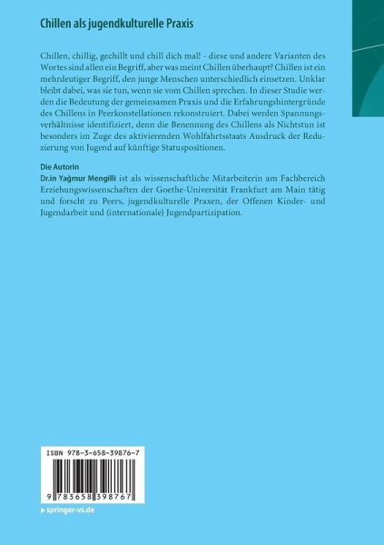 Chillen, chillig, gechillt und chill dich mal! - diese und andere Varianten des Wortes sind allen ein Begriff, aber was meint Chillen überhaupt? Chillen ist ein mehrdeutiger Begriff, den junge Menschen unterschiedlich einsetzen. Unklar bleibt dabei, was sie tun, wenn sie vom Chillen sprechen. In dieser Studie werden die Bedeutung der gemeinsamen Praxis und die Erfahrungshintergründe des Chillens in Peerkonstellationen rekonstruiert. Dabei werden Spannungsverhältnisse identifiziert, denn die Benennung des Chillens als Nichtstun ist besonders im Zuge des aktivierenden Wohlfahrtsstaats Ausdruck der Reduzierung von Jugend auf künftige Statuspositionen.