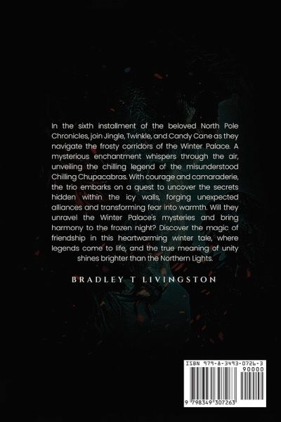 In the sixth installment of the beloved North Pole Chronicles,join Jingle, Twinkle, and Candy Cane as they navigate the frosty corridors of the Winter Palace. A mysterious enchantment whispers through the air, unveiling the chilling legend of the misunderstood Chilling Chupacabras. With courage and camaraderie, the trio embarks on a quest to uncover the secrets hidden within the icy walls, forging unexpected alliances and transforming fear into warmth. Will they unravel the Winter Palace's mysteries and bring harmony to the frozen night? Discover the magic of friendship in this heartwarming winter tale, where legends come to life, and the true meaning of unity shines brighter than the Northern Lights.